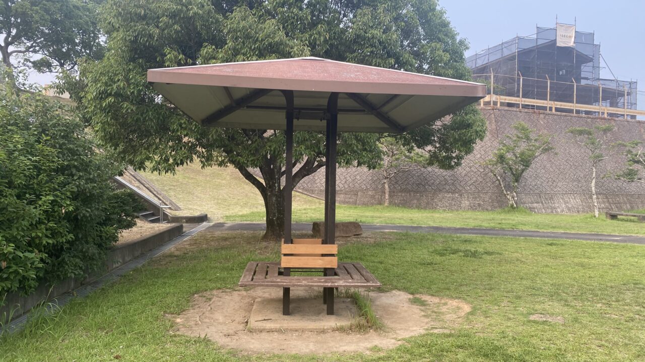 屋根付きの休憩スペースもありますよ〜。静かに読書も良さそうです。雨宿りにも使えそうです。